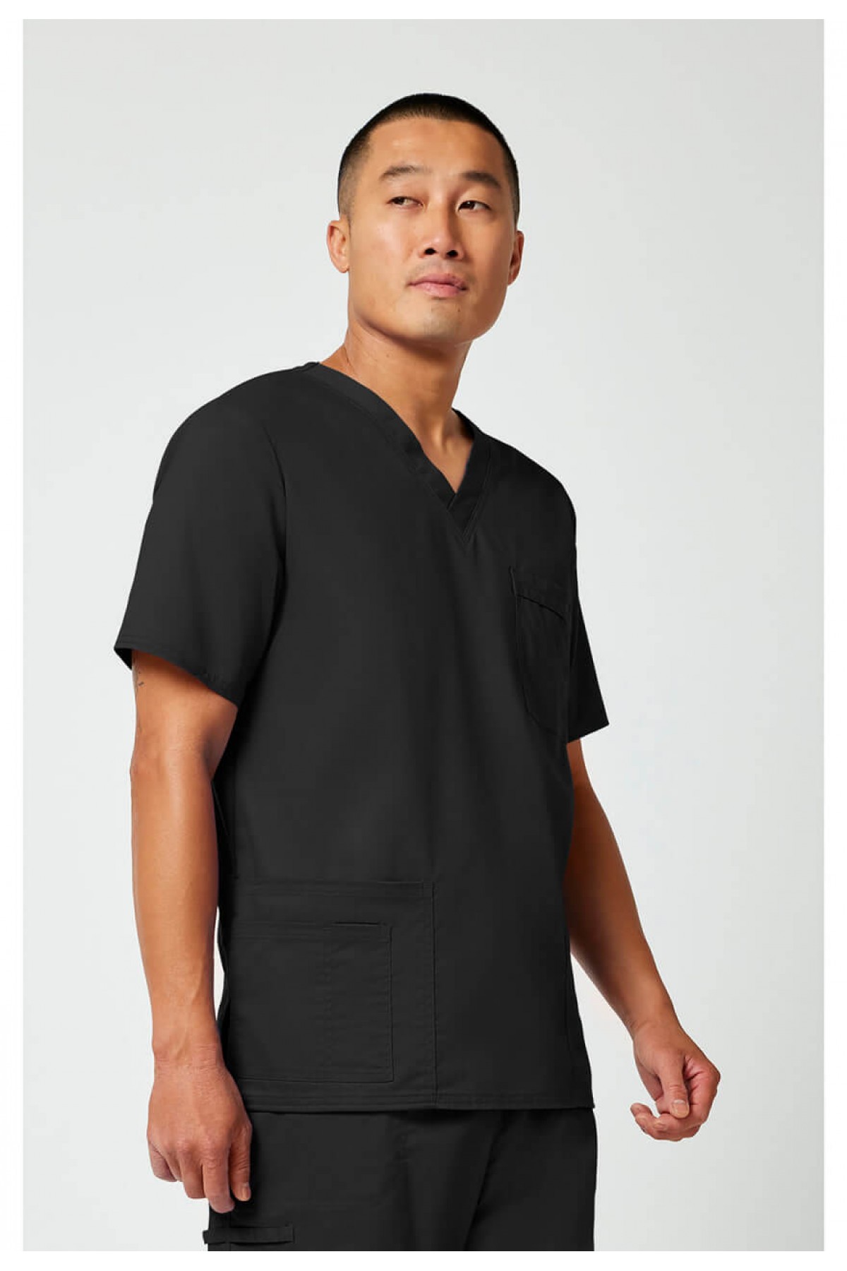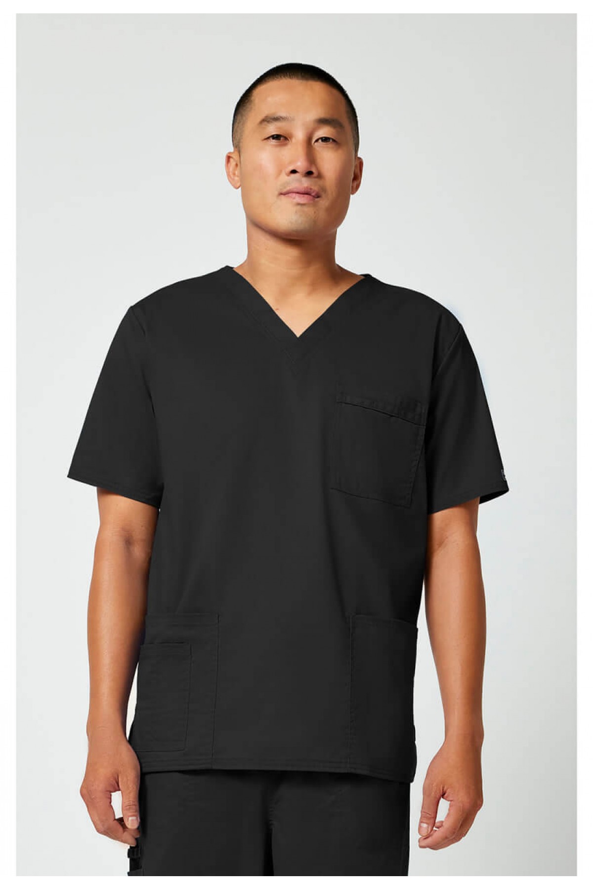 Унисекс с V-образным вырезом Unisex Traditional Fit оснащён двойным швом. В нагрудном кармане установлен держатель для инструментов. Также в комплекте входят два накладных кармана, дополнительный карман для приборов/мобильного телефона справа и боковые вентиляционные отверстия. Длина центральной спины: 28"