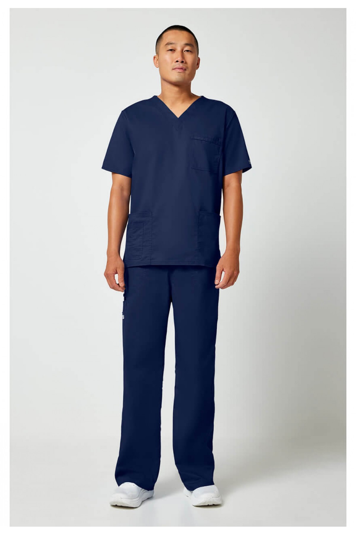 Унисекс с V-образным вырезом Unisex Traditional Fit оснащён двойным швом. В нагрудном кармане установлен держатель для инструментов. Также в комплекте входят два накладных кармана, дополнительный карман для приборов/мобильного телефона справа и боковые вентиляционные отверстия. Длина центральной спины: 28"