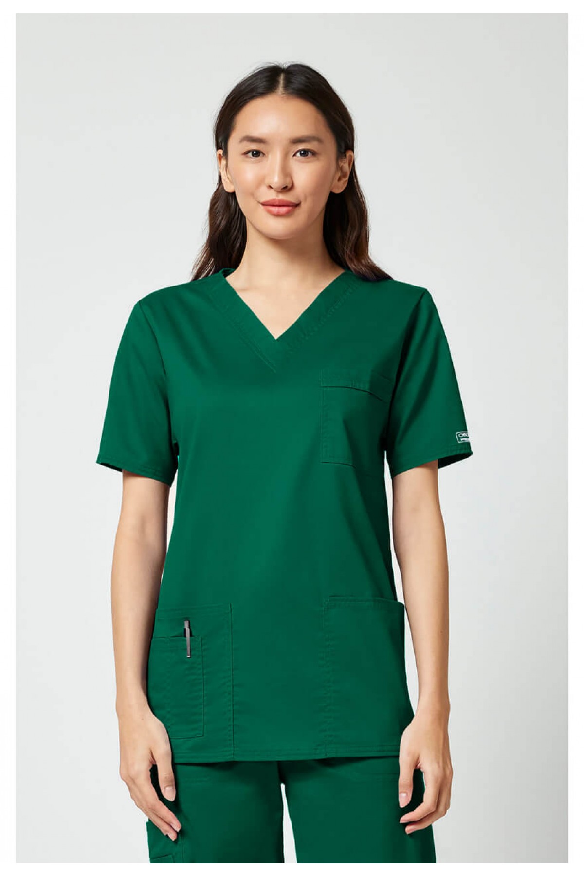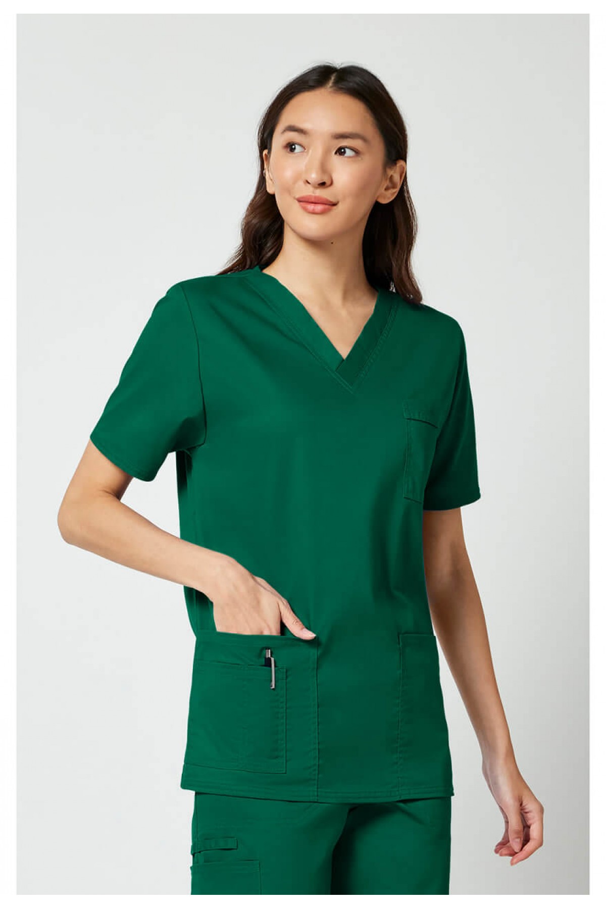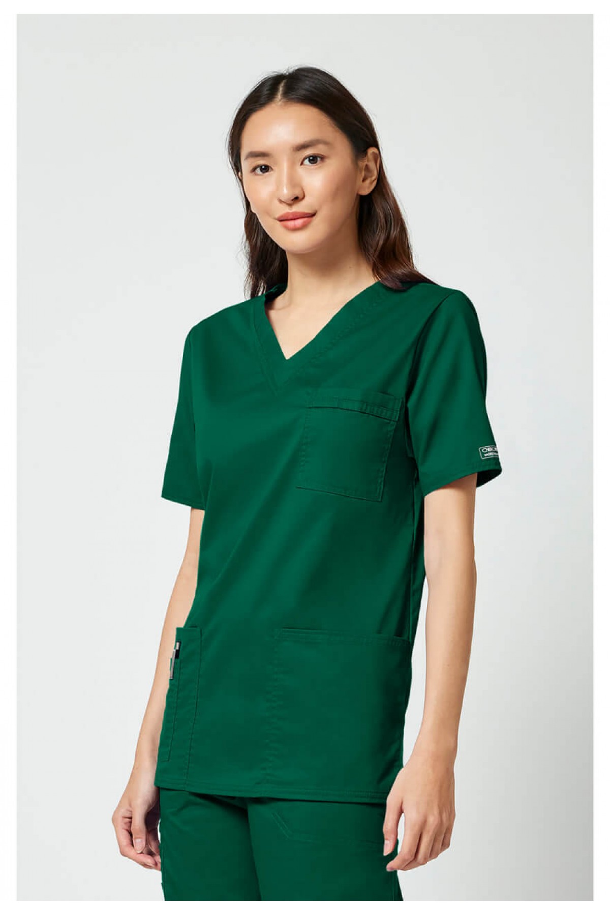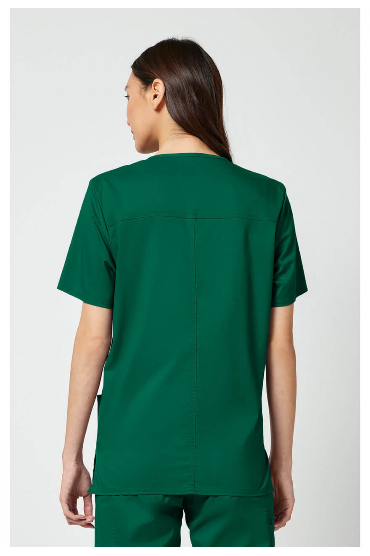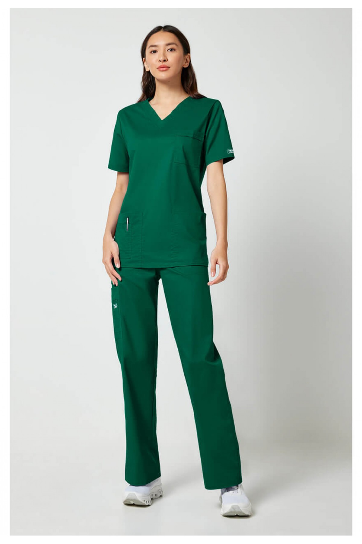Унисекс с V-образным вырезом Unisex Traditional Fit оснащён двойным швом. В нагрудном кармане установлен держатель для инструментов. Также в комплекте входят два накладных кармана, дополнительный карман для приборов/мобильного телефона справа и боковые вентиляционные отверстия. Длина центральной спины: 28"