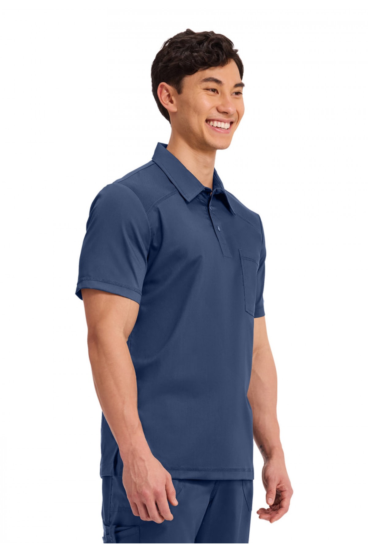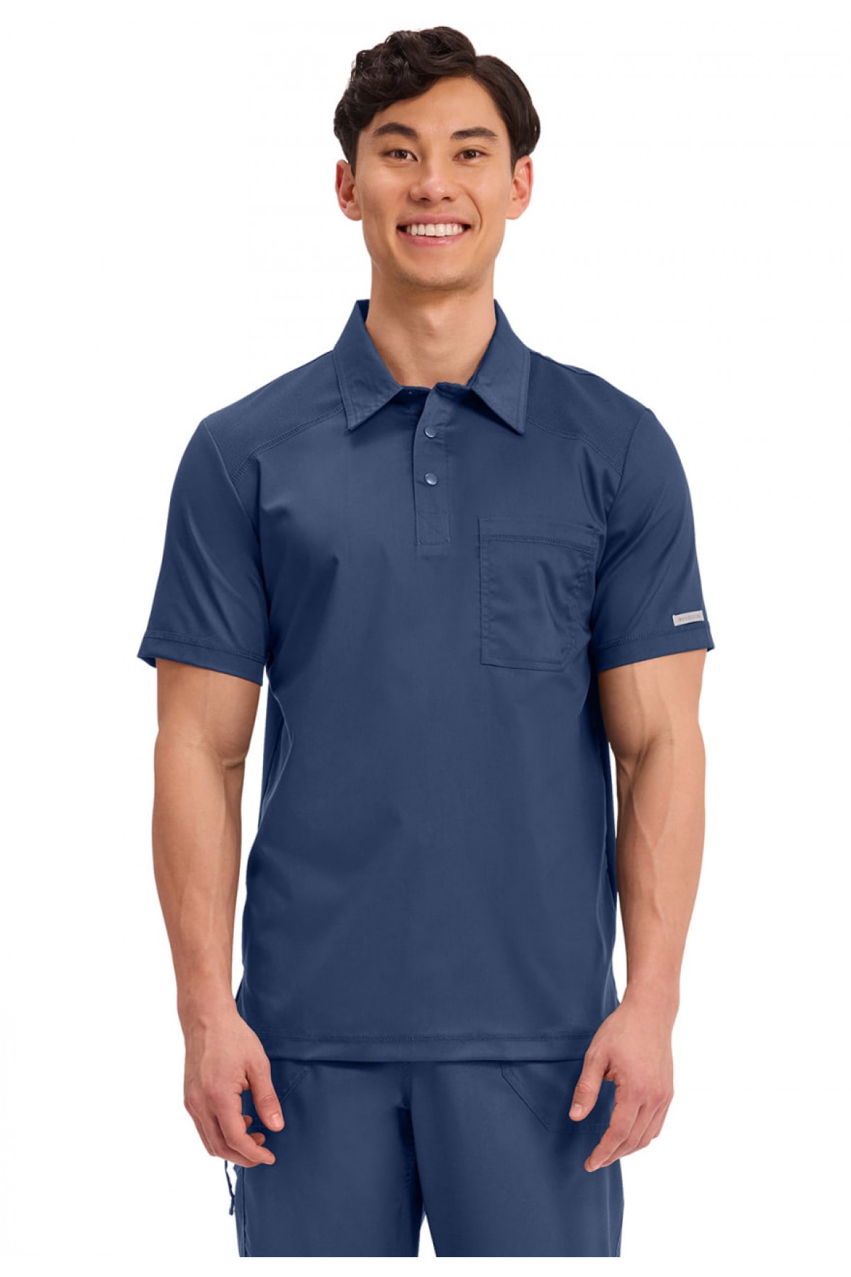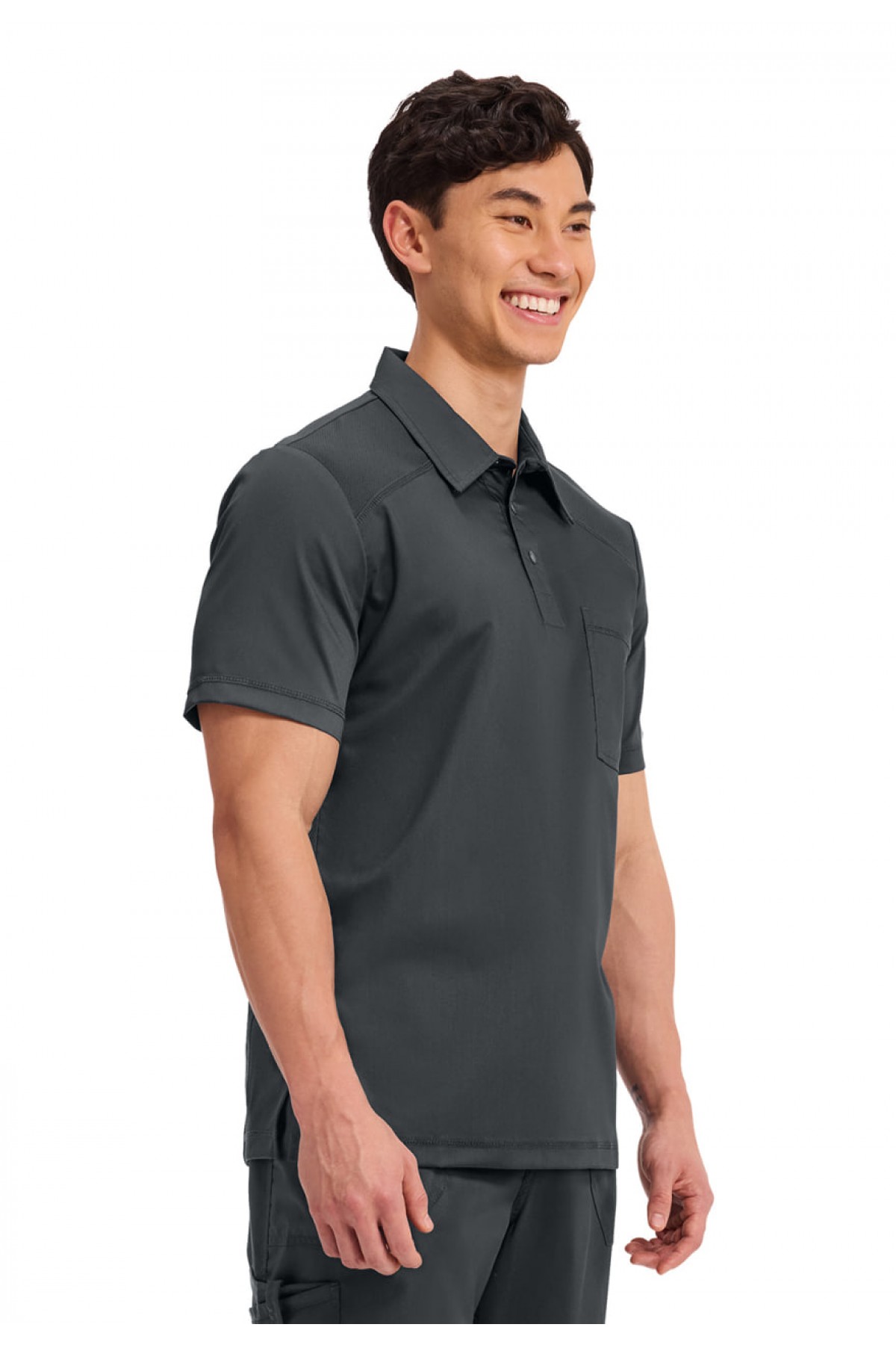 Изящная и современная спортивная мужская рубашка поло с воротником и дышащей сеткой на передней и задней панелях плеча для дополнительного комфорта и мобильности. Стиль также оснащен одним нагрудным карманом и петлей на задней отражающей ленте.