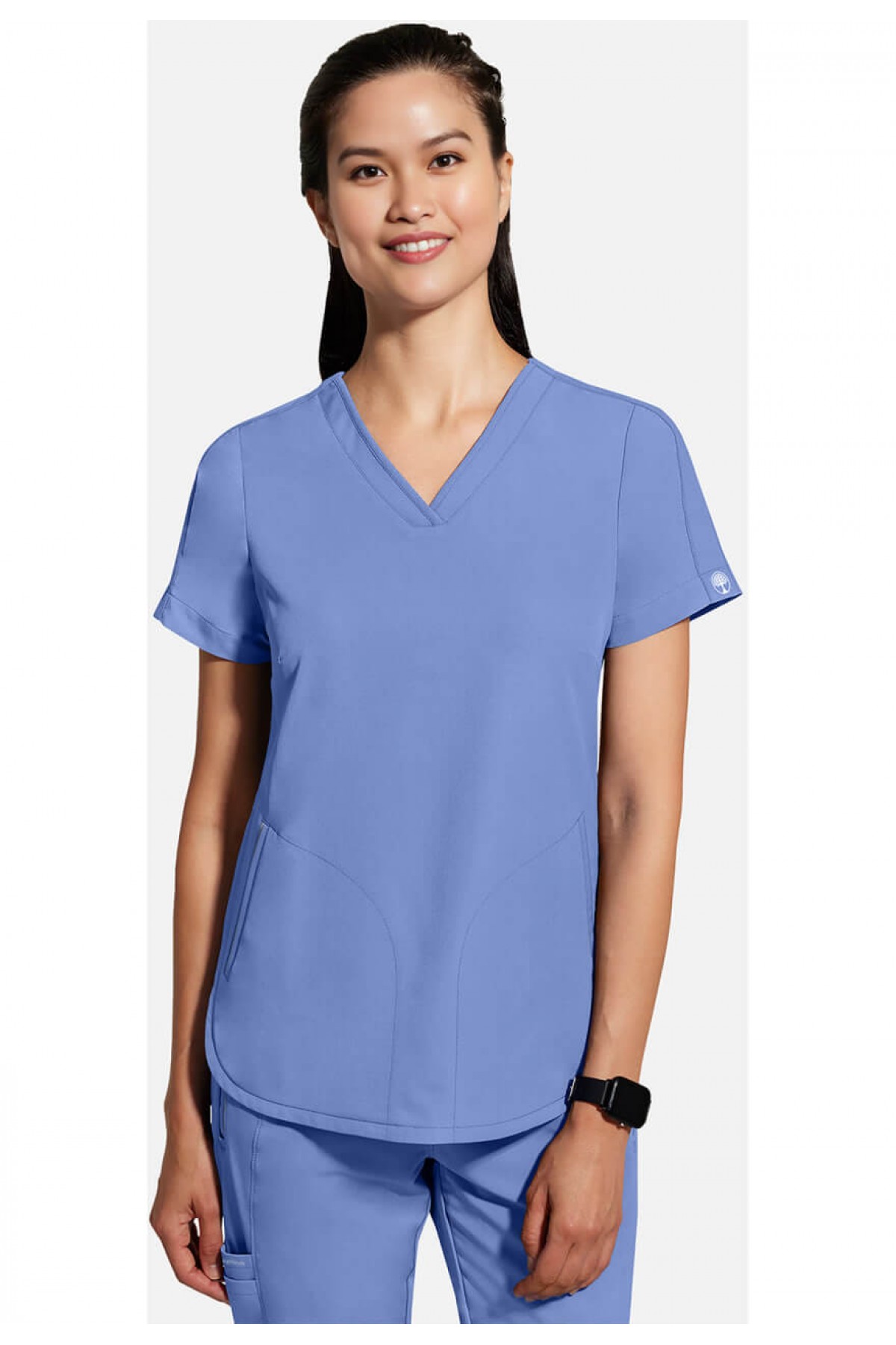 V-образный вырез,2 кармана внутренних, короткий рукав.