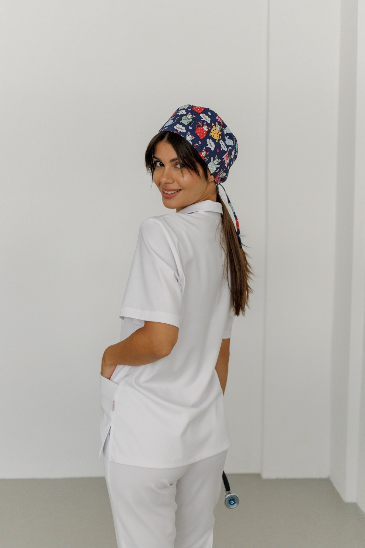 Колпак на завязках, высота 11.5 см, безразмерный.