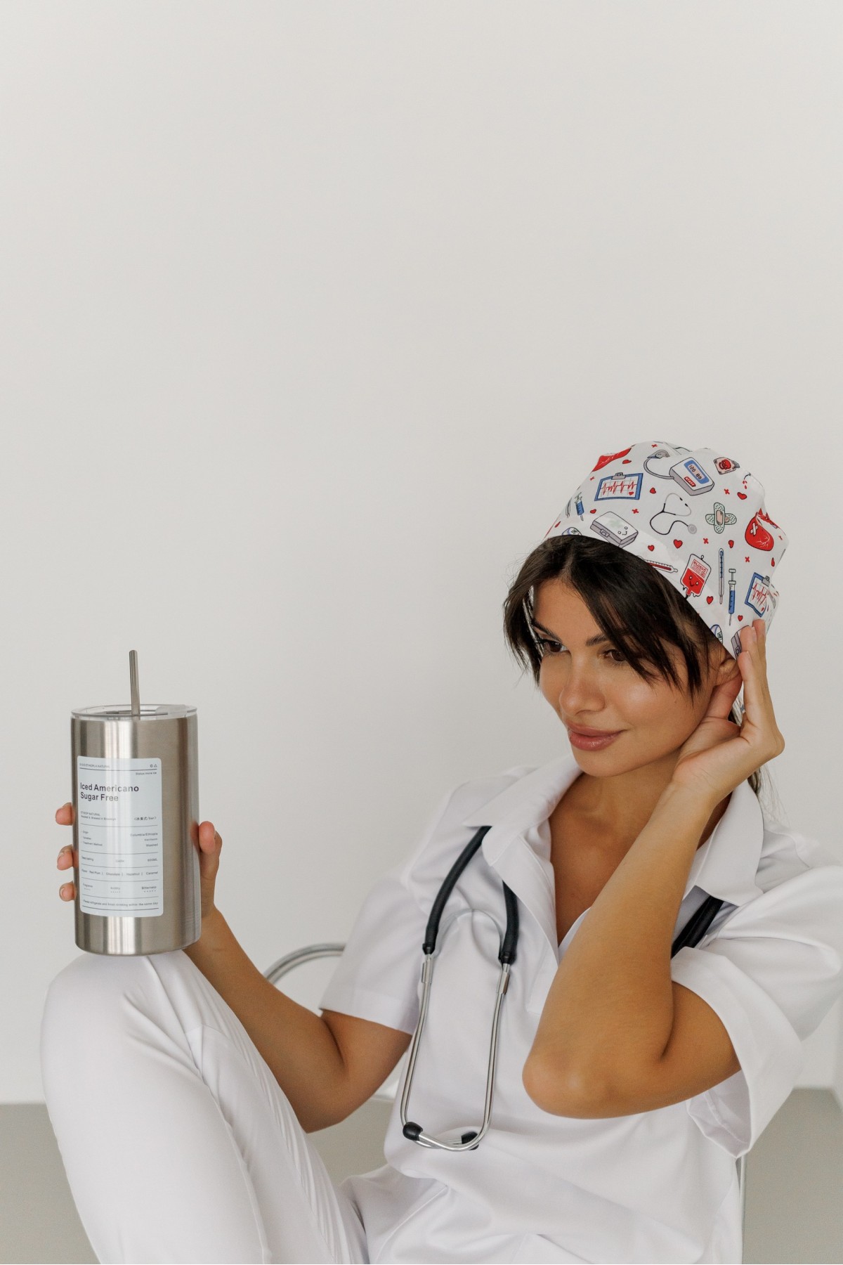 Колпак на завязках, высота 11.5 см, безразмерный.